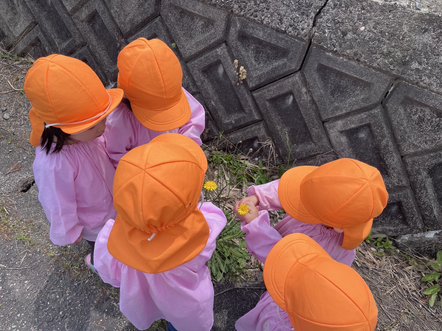 保育者が気づかないような場所に咲いているたんぽぽも見つけて、